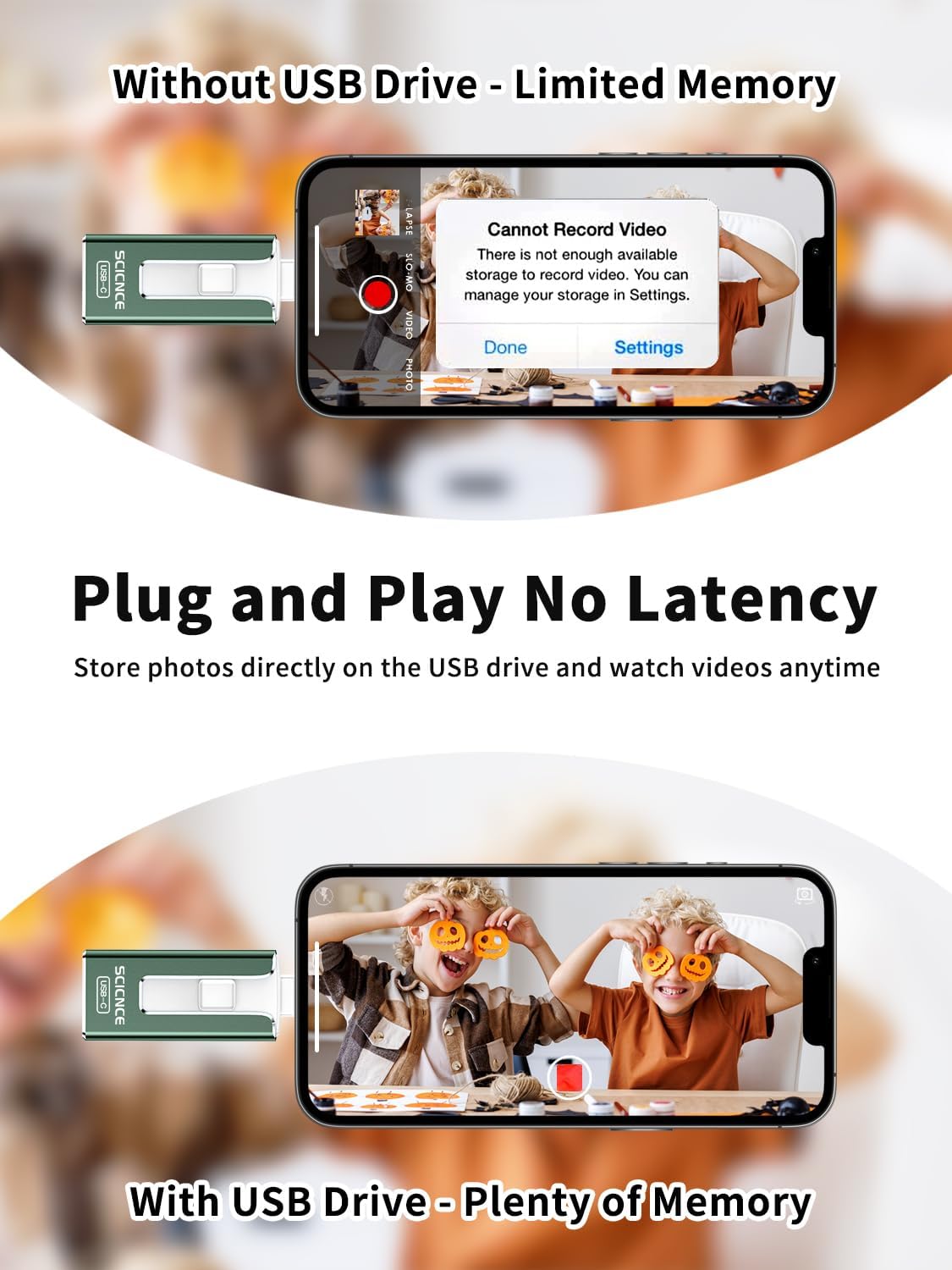 【Reliable After-Sales Service】Experience the convenience of high-quality USB memory stick and enjoy our premium customer service at the same time. For the phone flash drive, if you have any questions, we are willing to provide help. (Note: The phone case may prevent the proper connection between a phone and a usb flash drive, which could result in the phone being unable to recognize the usb flash drive. In this situation, please do not conclude that the usb flash drive cannot be used, remove the phone case and try again)